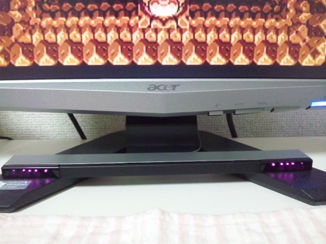 全然関係ないけど、Wiiのセンサーバーを携帯のカメラで撮ると、かわいいピンクな光が見えます(・∀・)