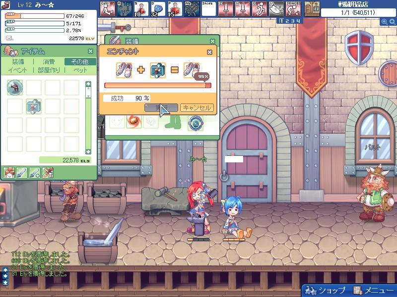 装備に特殊効果をつけたり、強い装備に作り変えたりできます。